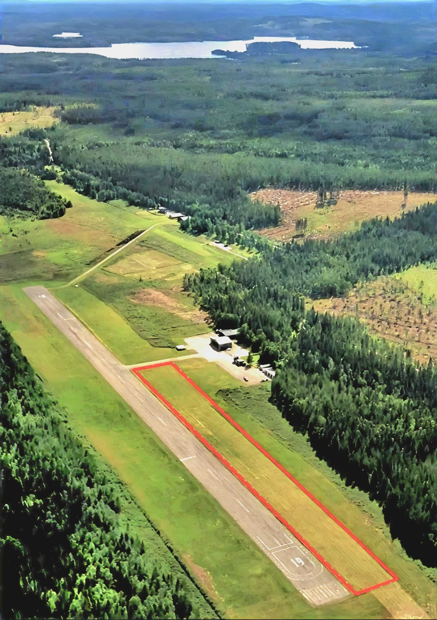 För er som föredrar att landa på gräs, är området markerat med röd färg på denna bild.