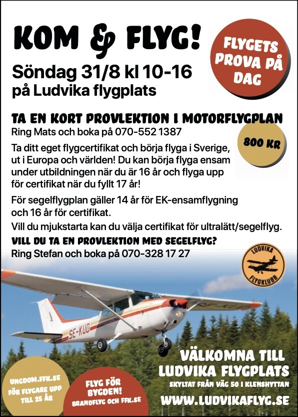 Ludvika FlygklubbOrdförande Magnus AnderssonSkeppmoravägen 2277194 Ludvika